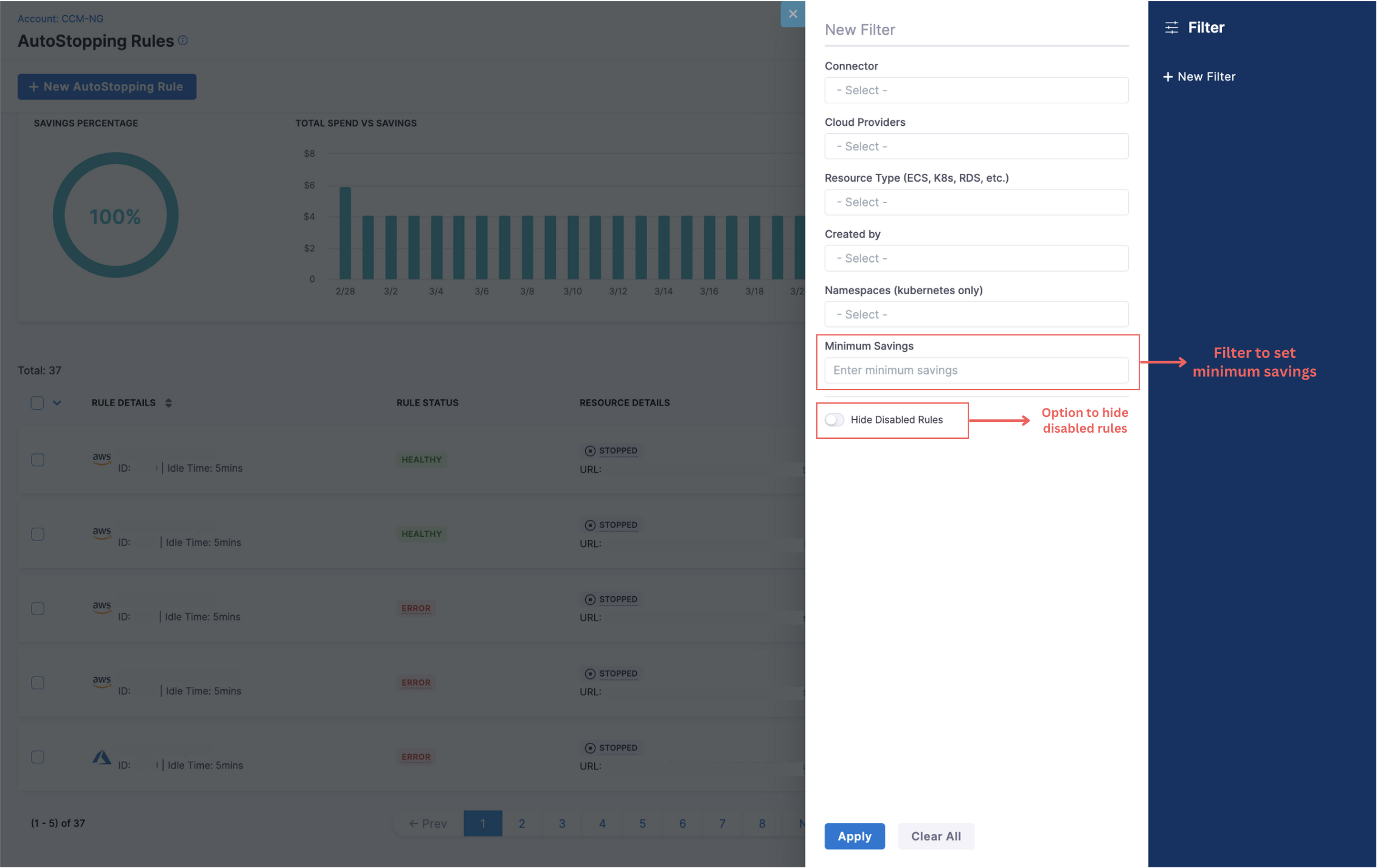 AutoStopping Timezone Display Correction: We have resolved an issue where the savings timestamp in AutoStopping Rules was coming from the BE in UTC while the UI was plotting them against the user's local timezone, causing mismatches. The chart now shows the savings in the user's local timezone.[CCM-25450]
