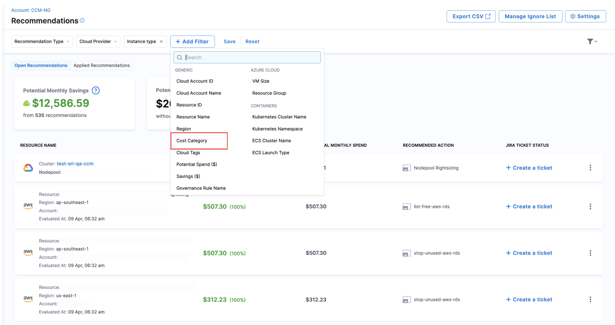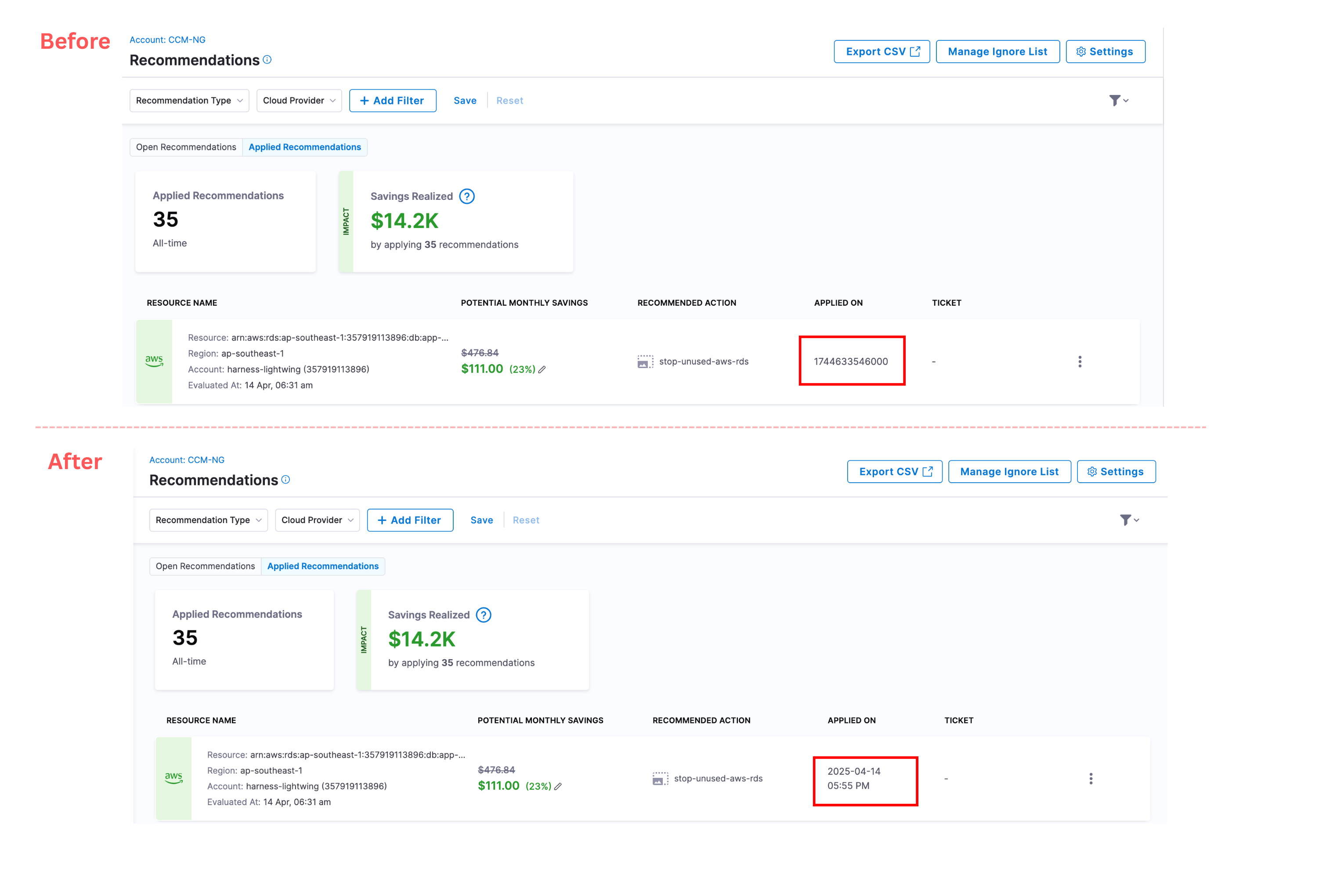 , ensuring consistent cost visibility across all recommendations. [CCM-23235]
