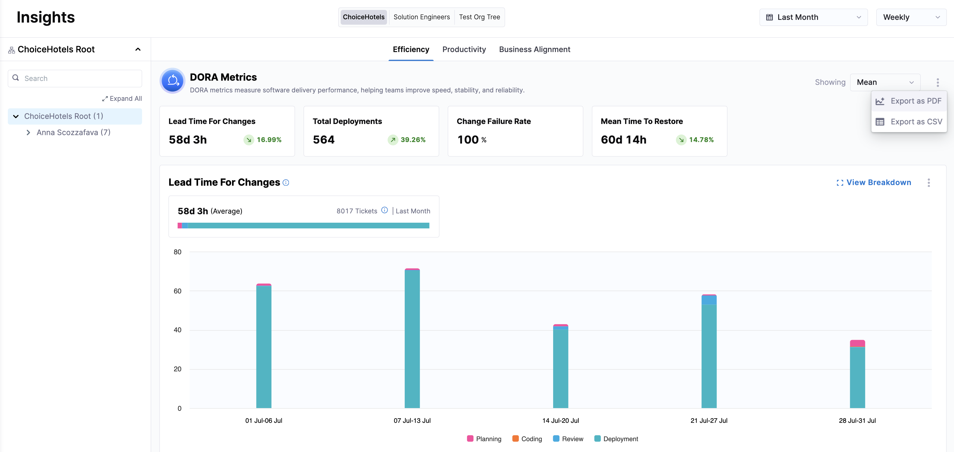 • Resolved an issue where the SCM PRs, SCM Rework, and SCM Coding Days reports were not respecting collection-level filters. The applied filters will now correctly reflect in the report outputs. (SEI-11160) (ZD-81229)